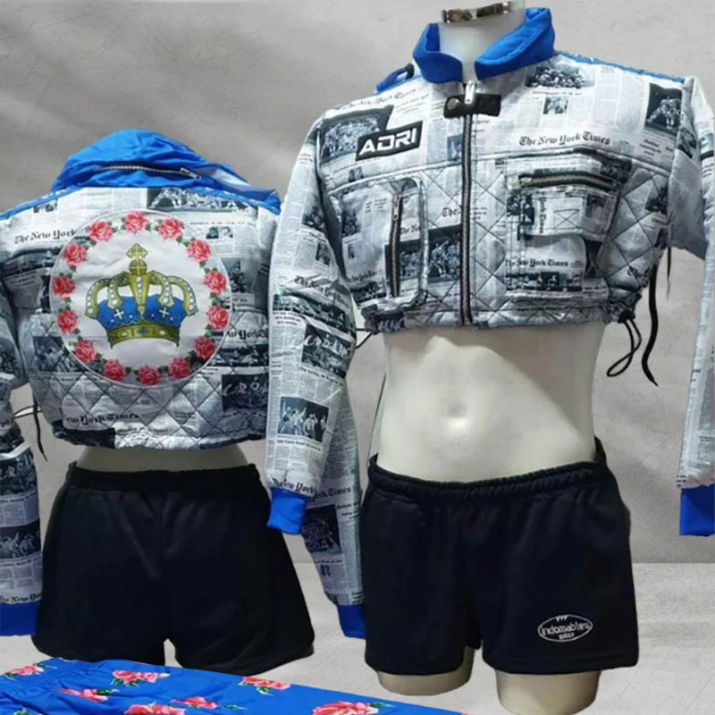 Newspaper Print Cropped Puffer